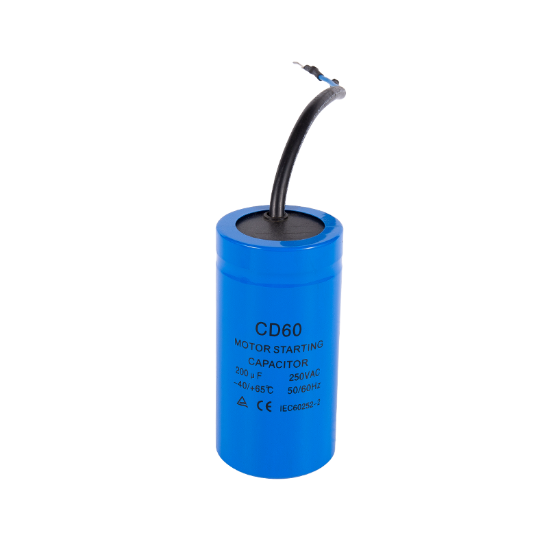CD60-aloituskondensaattoria käytetään pääasiassa korkean vääntömomentin moottorin käynnistykseen, kuten ilmastointilaitteisiin ja pakastinkompressoriin, vesipumppuihin tai muihin yksivaiheisiin virtalähdejärjestelmiin asynkroniset moottorit ja kolmivaiheiset asynkroniset moottorit käyttävät yhden vaiheen virtalähdettä.